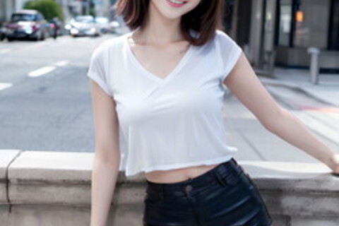 デニムやレザーのショートパンツを穿いてきれいな脚を見せている画像です