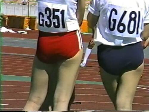 陸上競技ですから、太ももが上がりやすく、動かしやすくなきゃだめなんです、ですから恥ずかしいとか言ってられずウエストを引っ張りあげてハイレグ仕様にお尻がはみでたっていいんですよ