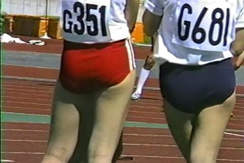 カラフルな色とりどりのブルマも見てて楽しいです、水色ブルマはすけますね、すけてようが関係ない、タイムのためですから