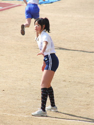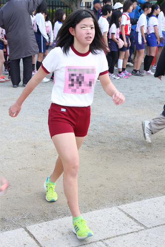 一転走りを追求したくるぶしソックス(靴に隠れて履いていないようにも見える)娘