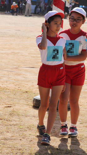 指導しているようで、美しいまでの短パン全開娘が並ぶシーンが見られます。