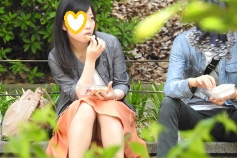 石椅子に彼氏と一緒に座っている可愛いお姉さんが、パンスト越しの白のパンティーを見せていたり・・・生まれて初めてのパンチラ撮影です。手が震えてしまい、いい動画のみを編集したら約1分30秒になりました。(臨場感が凄いと思います。)