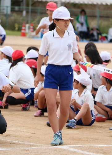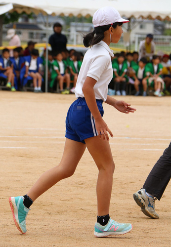 ゴールテープ係の藪にらみ娘もいい感じ。
