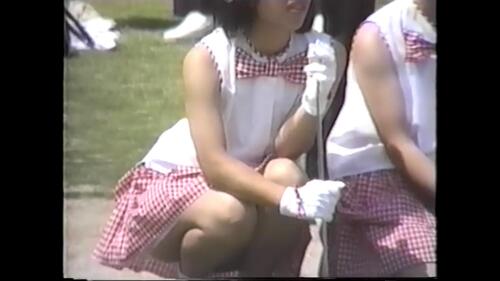見どころはオレンジブルマ隊 バレー部なのでしょうか、上下オレンジのユニフォーム オレンジブルマ このオレンジブルマ隊が道をうねうね歩いていく後ろを追いかけて撮影していく こんな子たちが目の前歩いていたら、そりゃついていきますよ こんなシーン今じゃ絶対ないし、当時が羨ましすぎる