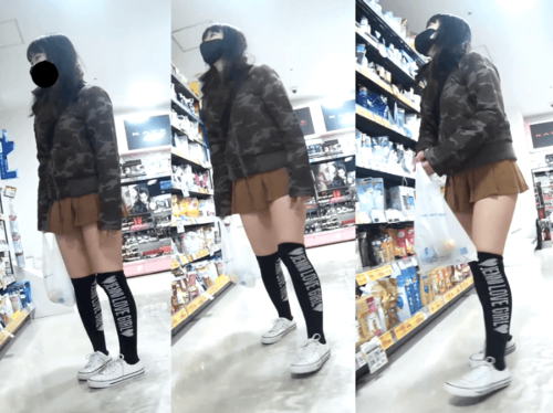 ムチムチ黒ニーソC学年ちゃんプリップリのお尻を逆さ撮り