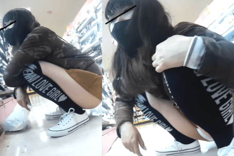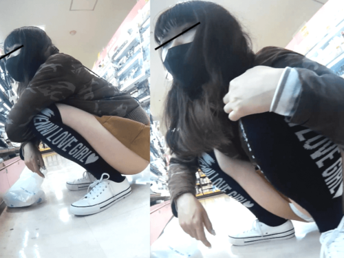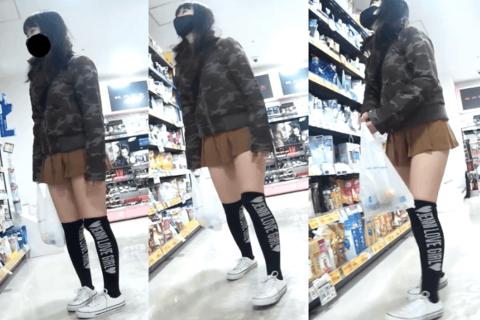 緊張感のないM字開脚で無限に逆さ撮りwww