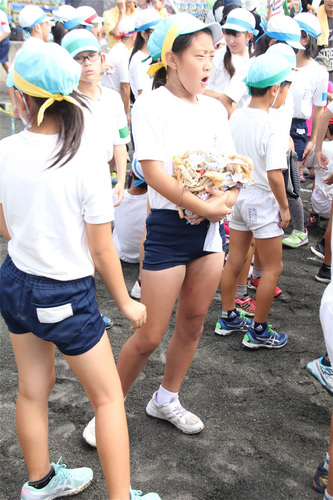 やる気満々のチームで準備体操時から体をグラウンドにつけて