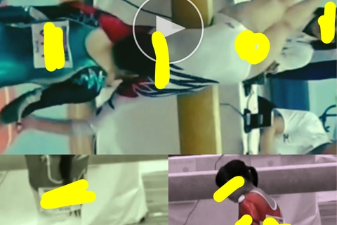1名の平均台のシーンの全部とその後の周りの学生さんのお尻です。高〇名あり。
