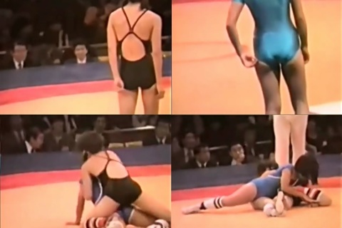 レオタード型や水着型、または水着を転用したウェアが主流だった時代の女子レスリング映像その6。