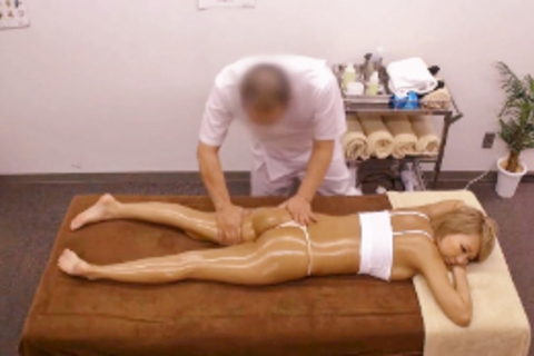 派手なショートヘアが似合う胸元がオープンでオッパイを目立たせるファッションしたエロそうなギャル。負けん気の強い彼女はむさくるしいオッサン相手でも関係なくタメ口。しかも担当が目の前にいるエロいことばかり考えてそうなオッサンだと分かれば「イヤだ、ムリ、何で?!」と全力で拒否。しかしそんな生意気ギャルをハメまくりたいオヤジは言い訳ばかりして押し通し、布地が小さく薄々のエッチな施術着ブラとショーツを渡し着替えさせる。早速施術のためストレッチだと言って股を開かせ小さいTバックショーツからアナルやオマンコが見えそうな恰好をさせ楽しむエロオヤジ。そしてオイル施術が始まれば我慢ができず、いやらしく手が伸びれば「触んな!アホ!」と全力で反抗的な態度を取られてしまう。それでも薄っぺらい嘘を並べて抵抗するギャルを丸め込み徐々にまた手をエロい局部に伸ばしていき性感帯を刺激。ついにエロ刺激に耐え切れずエッチな声を漏らしてしまったギャルはキモオヤジの思惑通り。すっかり素直になり男にやられたい放題となればチンコを欲してフェラで咥え込み、大量の潮を吹きながら生ハメでイキまくってチンコを締め上げる。あまりのエロマンコに我慢できなくなった男はそのまま勝手に大量中出し。黒ギャルは突然の大量膣内射精に唖然としてしまう。