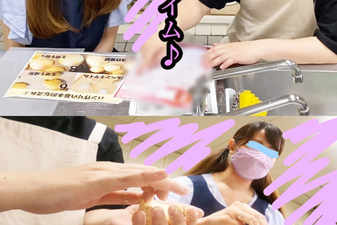 パンをこねる手がなんともやらしい、、これはいけるとミニスカ覗き込んだらうっすらシミたパンティがバーン!ブサ友がニヤニヤしすぎててキモかったです