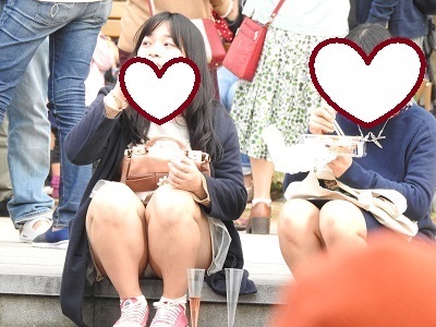 石段に座っているぽっちゃり系のお姉さんが、M字になって白のパンティーを見せていたり、石段に座っている綺麗なお姉さんが、白のパンティーを見せていたり・・・生まれて初めてのパンチラ撮影です。手が震えてしまい、いい動画のみを編集したら約2分03秒になりました。(臨場感が凄いと思います。)