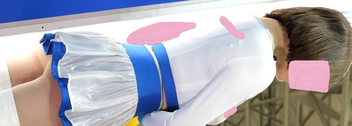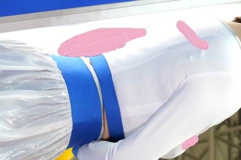 コンパニオンのショーパンの隙間からハミるピンクのP。