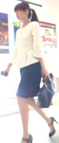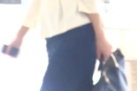 彼女は紺色のミドル丈スカートを履いていました。膝上5cmくらいのスカート丈でしたのでパンツを狙うには難しそうです。ところが彼女のスカートをよく見たところ、お尻の部分にスリットが入っていました。もしかしたらこのスリットの隙間からパンツが狙えそうに見えます。そこでカメラを準備して撮影を開始しました。彼女を後ろから追いながら機会を待ちます。
