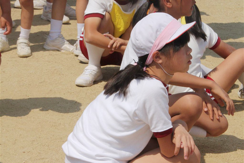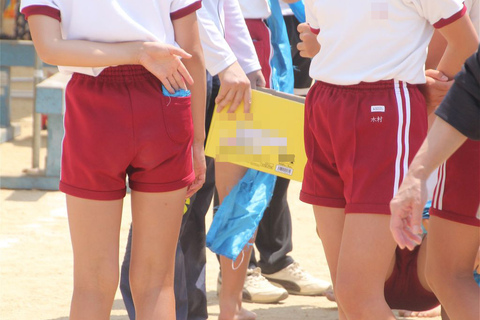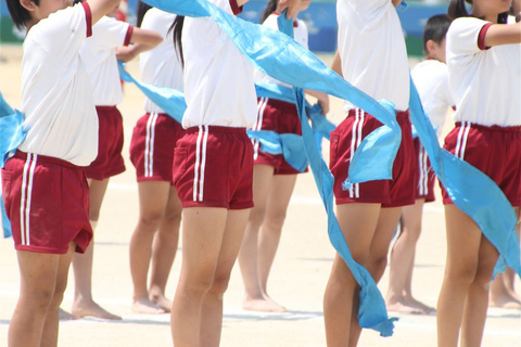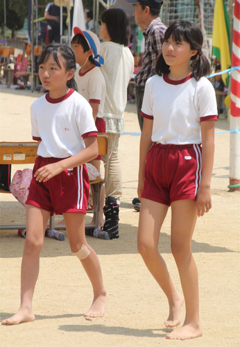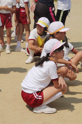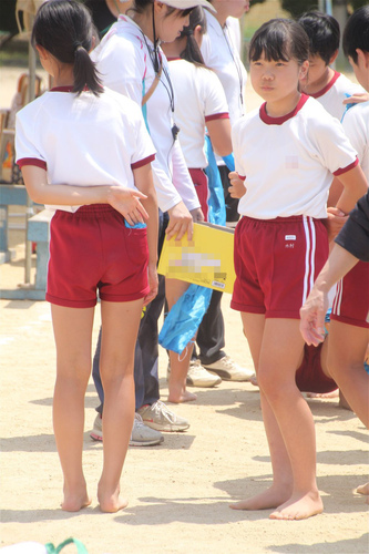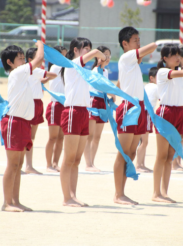 そんな長めの白ソックスを脱ぎ捨て組体操の舞台へ。