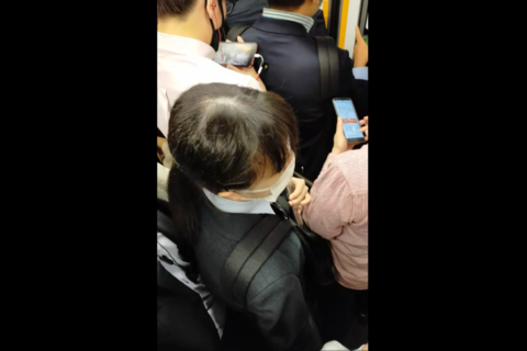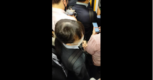 徐々に前に前進していくも、満員電車のため、なかなか進むことはできず、結局押し付けの餌食に。