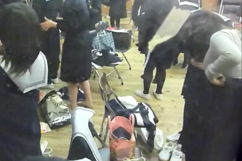※とある学校の体育館での急ぎの着替え風景になります。
