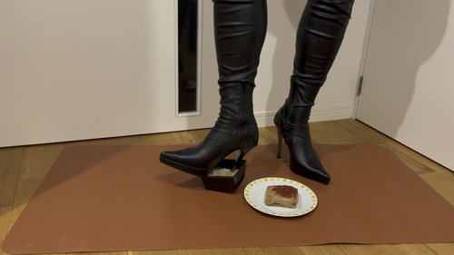 ピンヒールニーハイブーツでハンバーグ踏み潰し #フードクラッシュ #ニーハイブーツ