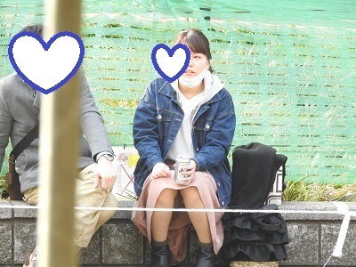石椅子に彼氏と一緒に座っている可愛いお姉さんが、白のパンティーを見せていたり・・・生まれて初めてのパンチラ撮影です。手が震えてしまい、いい動画のみを編集したら約1分50秒になりました。(臨場感が凄いと思います。)