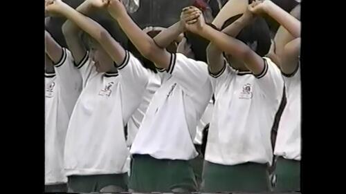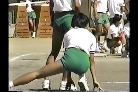 11:55 組体操? 地面に伏した際に前の子がオナラをしたので、後ろの子がちょっとー的な感じでお尻をたたくw このブルマのピラミッドもあります