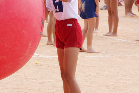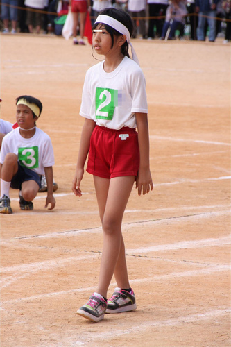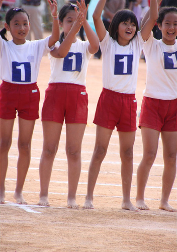 仕方ないと思っているのか前競技の準備から裸足で頑張っている娘がいます。