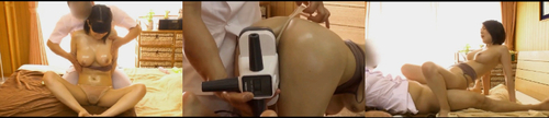 可愛らしいショートヘアのお姉さんは疲れた身体をほぐしたくてオイルマッサージを依頼。すると現れたのが男ということで戸惑いを見せるも疑うことを知らなく素直に招き入れてしまう。指示されるがまま布面積が小さくオイルが染みこめばスケスケになってしまうほど薄い施術着に着替えさせられる。男は油断させるため最初は恥ずかしがる女性客に配慮するかのようにタオルを巻いたまま無難な部分から刺激。警戒心を得意の口車で解きながら「目隠しをすればリラックスできますよ」と言って女性客が見えないのを良いことに調子に乗り始める。オッパイが大きく施術着ブラからはみ出しそうなのに狙いをつけて、いかにも自然な流れかのように施術着ブラをずらして巨乳を丸出しにさせてしまう。オイルを塗りまくり身体を少しばかり包む布はスケスケになり恥ずかしい局部は丸見え状態。「リンパを流しますよー」とオマンコを執拗に刺激し感じさせまくり、目隠しを外す頃には最初からは想像もつかないエロい姿に変わり果てる女性客。エロオヤジの思惑通りにお姉さんを調教できれば先ほどまで恥ずかしがっていたのにオマンコをかき回され潮を吹いてイキまくり。キモオヤジのチンコを欲して貪欲にフェラで咥え込み、巨乳を揺らし生ハメ中出しを受け入れる。