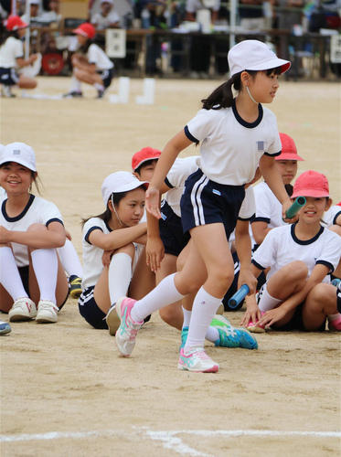 シンプルな紺地白ラインの短パンチーム。