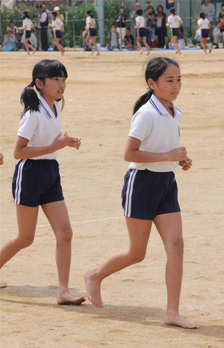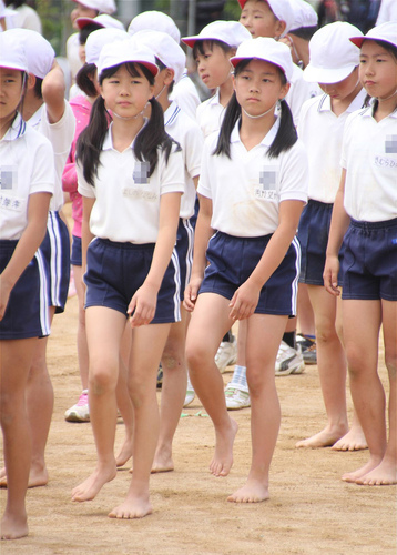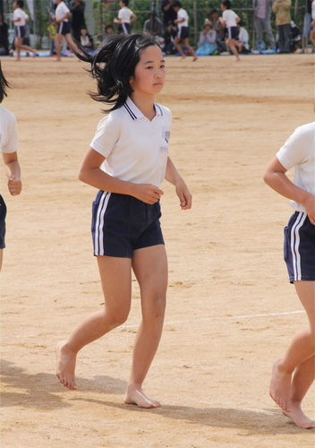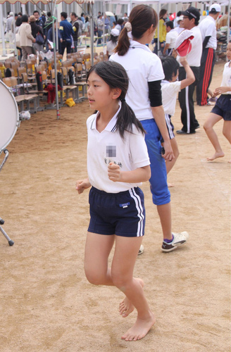 慌ただしく紅白帽だけ持って裸足のまま閉会式をしていきます。