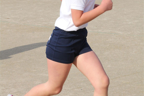 シンプルな紺単色短パン+白無地チームワッペンのみの
