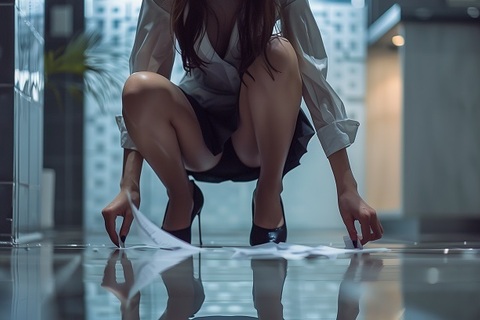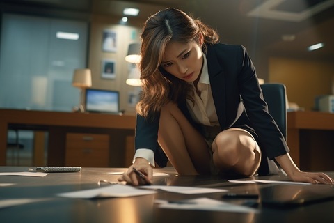 【AIミニスカOL】タイトミニスカ姿の敏腕OLが一瞬の油断をした瞬間