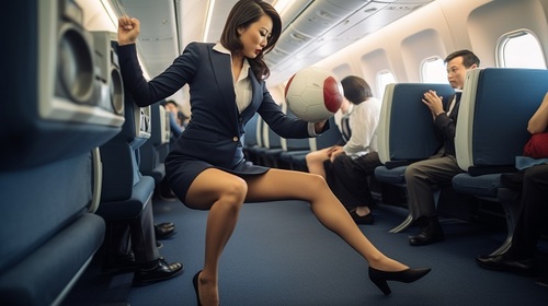 高画質・高品質な画像生成AIによるハイヒールにタイトミニスカ姿のキャビンアテンダントたちが乗客の落としてしまったボールをミニスカ制服姿で拾ってくれるシチュエーションをAIにて描き、ついつい無防備なってしまう瞬間を捉えた画像ショットスライドを集めた動画ファイルとなります。