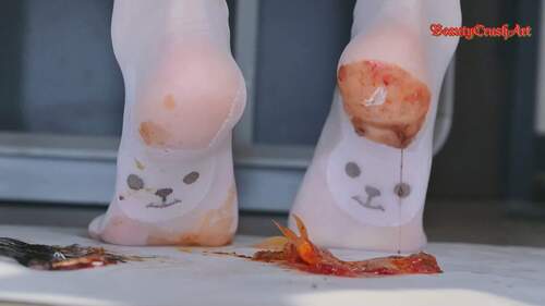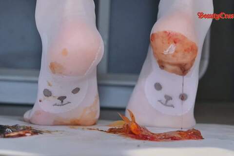 霏ちゃん可愛いな白タイツで魚を踏み潰す