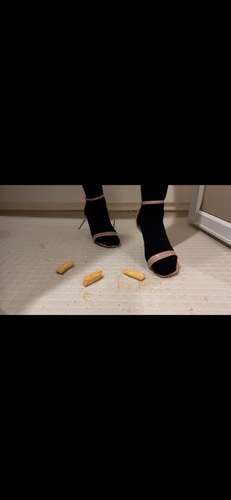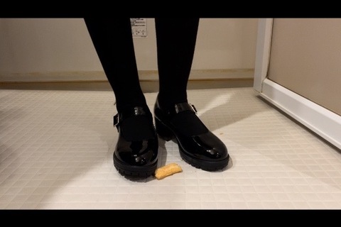 ストラップシューズとサンダルヒールのお菓子踏み潰しです。