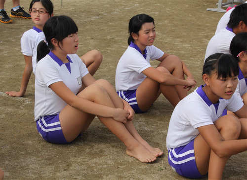 そして体育すわりをする。ボリューム感のある太ももがさらに圧縮されて