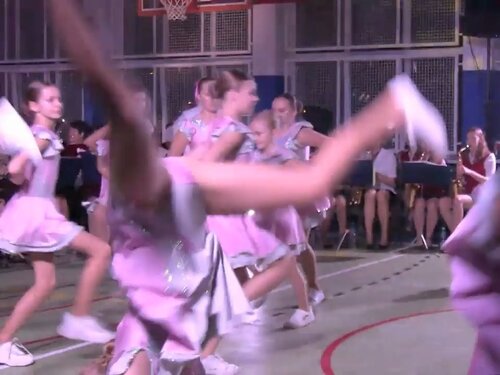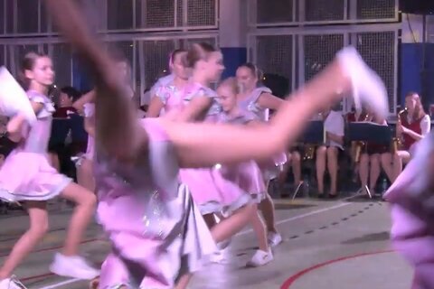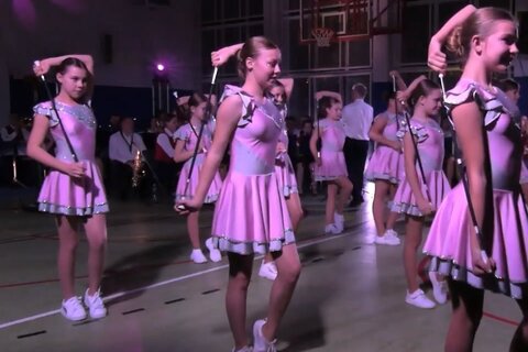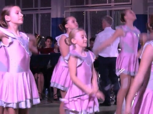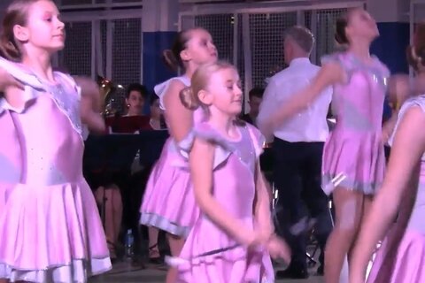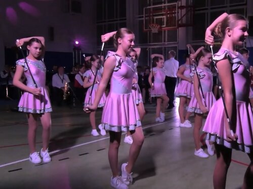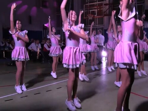 海外のバトンチアリーディングです。オーケストラによる生演奏での演技です。