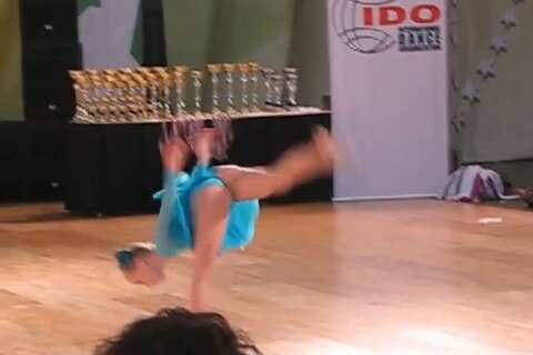 海外の金髪美少女のダンスです。レオタードが食い込んでいます。