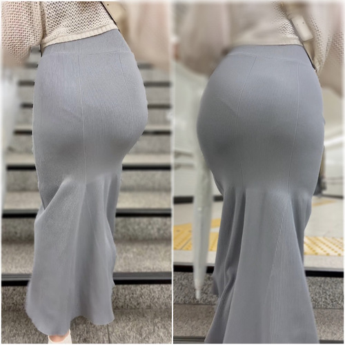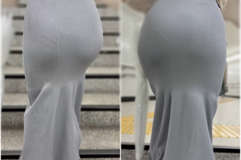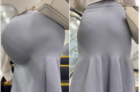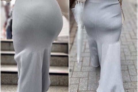 タイトなニットワンピース姿