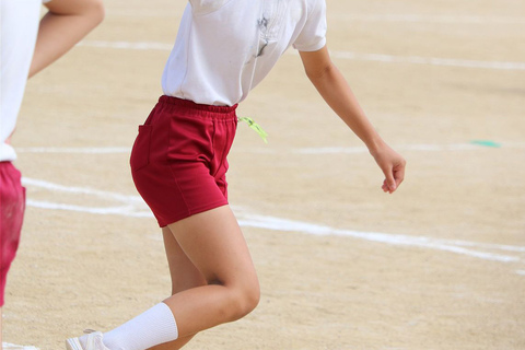 輝くきれいな脚と清潔感のある白ソックス統一のまぶしさ。