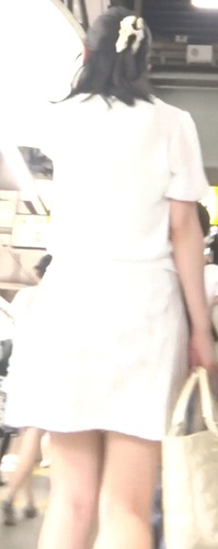 彼女は白いミニスカートを履いていました。かなりのミニ丈スカートでしたので、これはパンチラをもらったも同然です。すぐにカメラを準備して撮影を開始しました。そして彼女の後方から近づいて行きます。