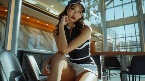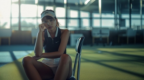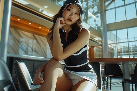 タイトミニのゴルフスカート姿の脚長女子ゴルフアスリートたちの練習後、気を抜いたせいかスカートの裾からパンチラしてしまう瞬間を高画質・高品質な画像生成AIにより捉えました。