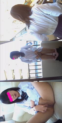 見た目は真面目っぽいですが、エロいことが大好きです。朱莉の部屋のベランダでマンコ出した後、オナニーさせたあと、生でハメてます。