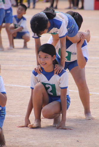 水色チーム組体操続き。