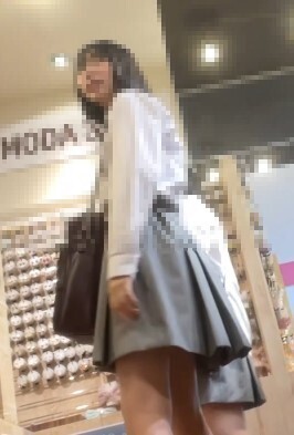 1人目は友人とショッピング中の可愛い標準体型のJK。スカート内は白のパンツです。