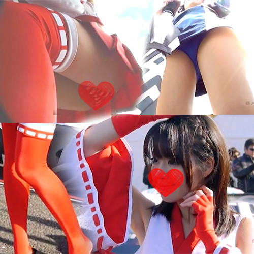 パンチラ美脚コスプレ超美人キャンギャル・レースクイーン女神ローアングル逆さ撮りコンパニオン