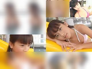 白のビキニでプール遊びするシーン黄色の滑り台に座ってるシーンプールで遊んでるシーンでなんと、