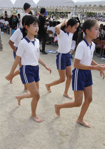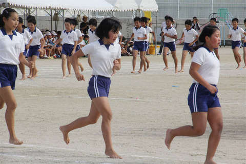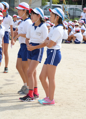しっかりシャツインの清潔感のある体操着が砂でべろべろ、