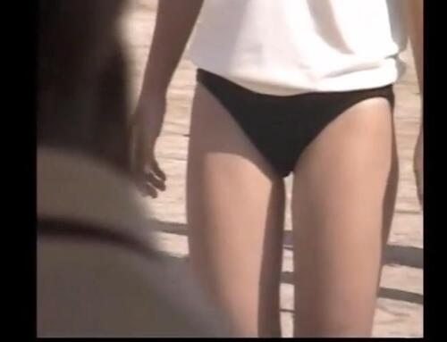 異常に食い込んでハイレグになっちゃってる子、プリプリなお尻、最高です