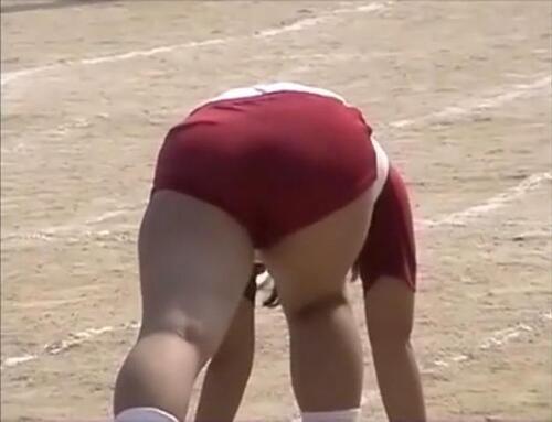 白の体操服に紺色のハイレグ!ブルマw