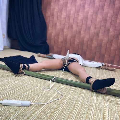 その状況で電マのスイッチを入れられ、もがきながらも快楽を感じる可哀そうな姿。