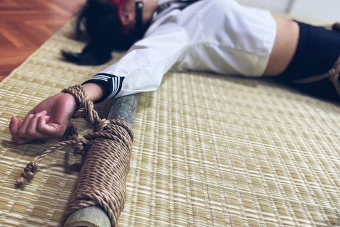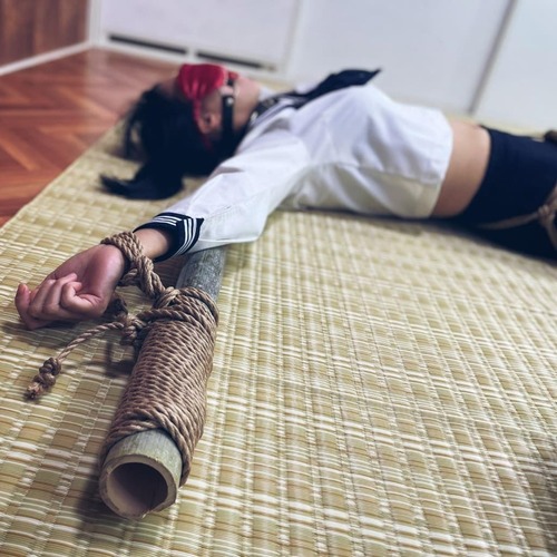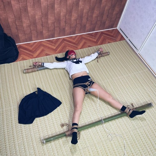 女の子は目隠しをすると、制服のスカートを脱がされアンダーはブルマ姿に。
